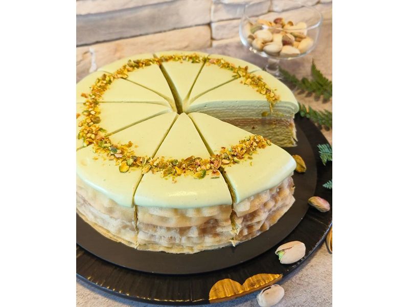 開心果摩卡千層蛋糕將香濃的咖啡與堅果的香氣完美融合,